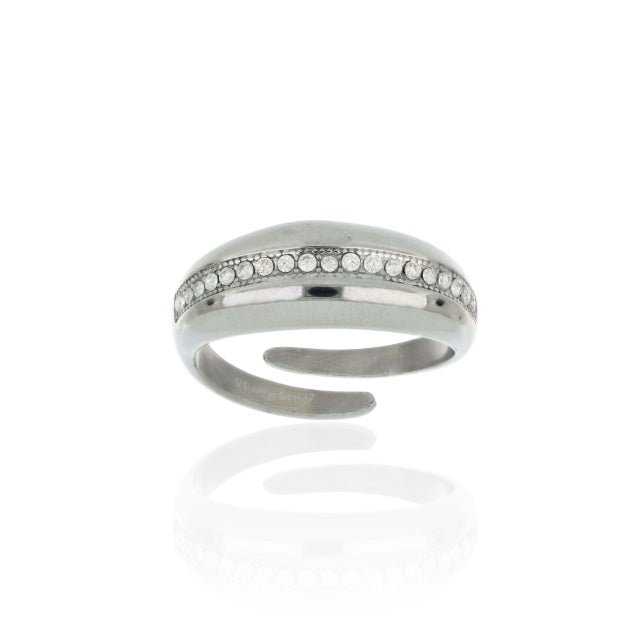 Disponibile nelle varianti Gold e Silver, questo anello è perfetto per arricchire un look quotidiano con un tocco sofisticato o per completare un outfit da occasione speciale. La sua linea moderna e la lucentezza dei dettagli lo rendono versatile e capace di valorizzare ogni stile.