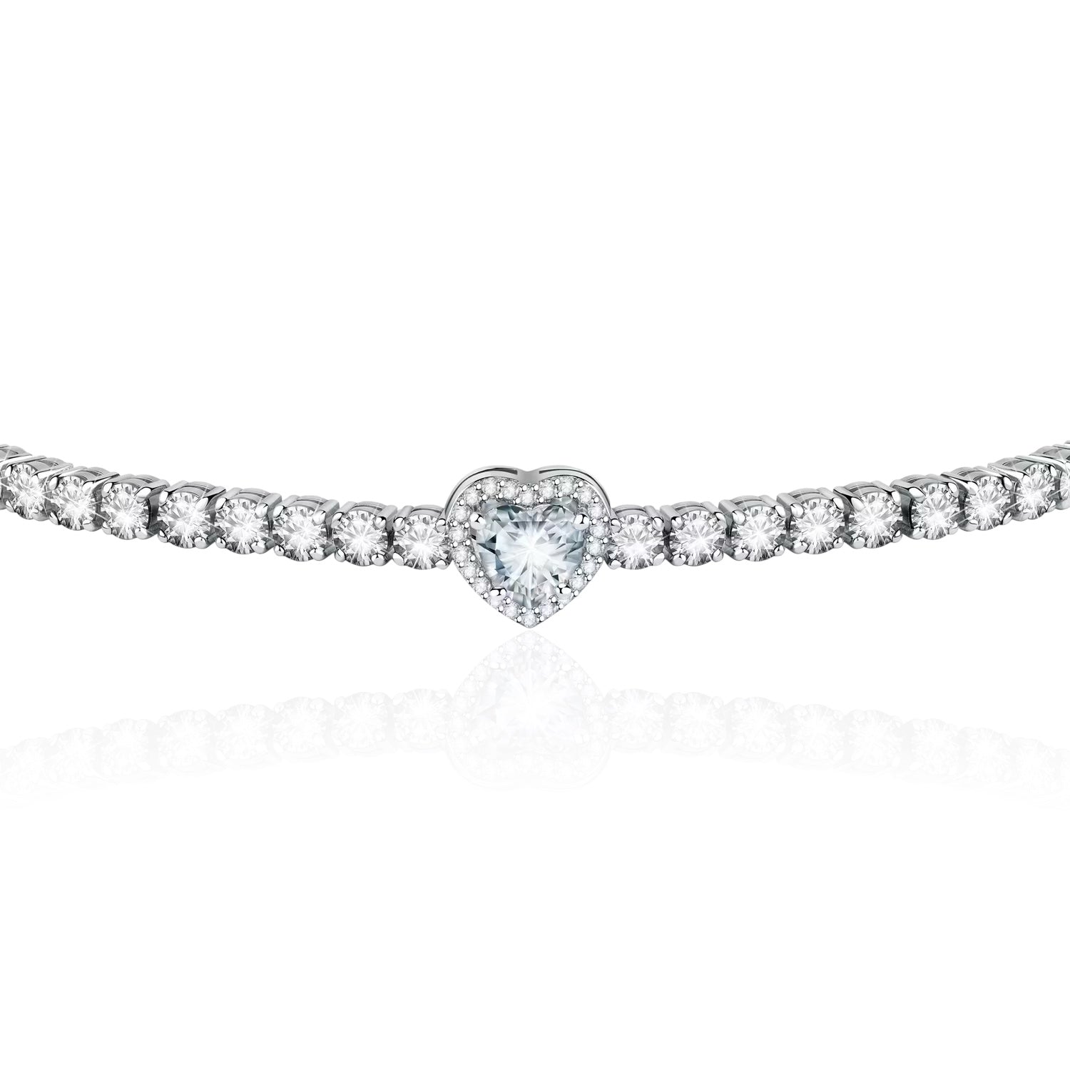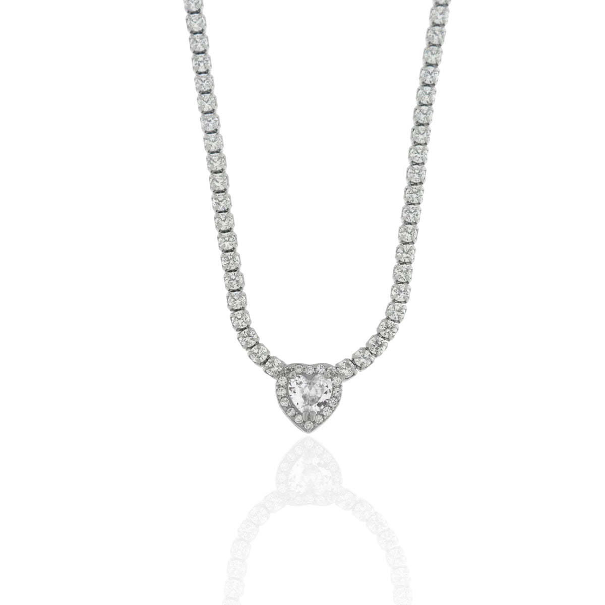 Ogni pietra riflette piccoli bagliori che accarezzano la pelle, mentre il pendente a cuore, regolabile grazie al cursore, diventa simbolo di amore e di unicità. È una collana che sa adattarsi a ogni momento, dalle occasioni più speciali a quelle di tutti i giorni, regalando sempre un tocco di luce autentica.