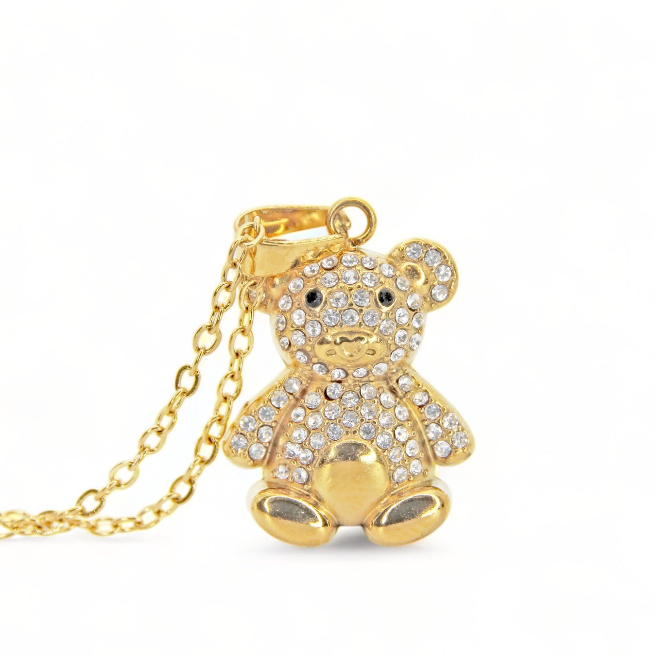 La collana donna con ciondolo orsetto “Orsetto Coccoloso” è un gioiello che unisce dolcezza e brillantezza. Il ciondolo a forma di orsetto, tempestato di zirconi luminosi, diventa simbolo di affetto e leggerezza, capace di illuminare ogni look con un tocco giocoso ed elegante.