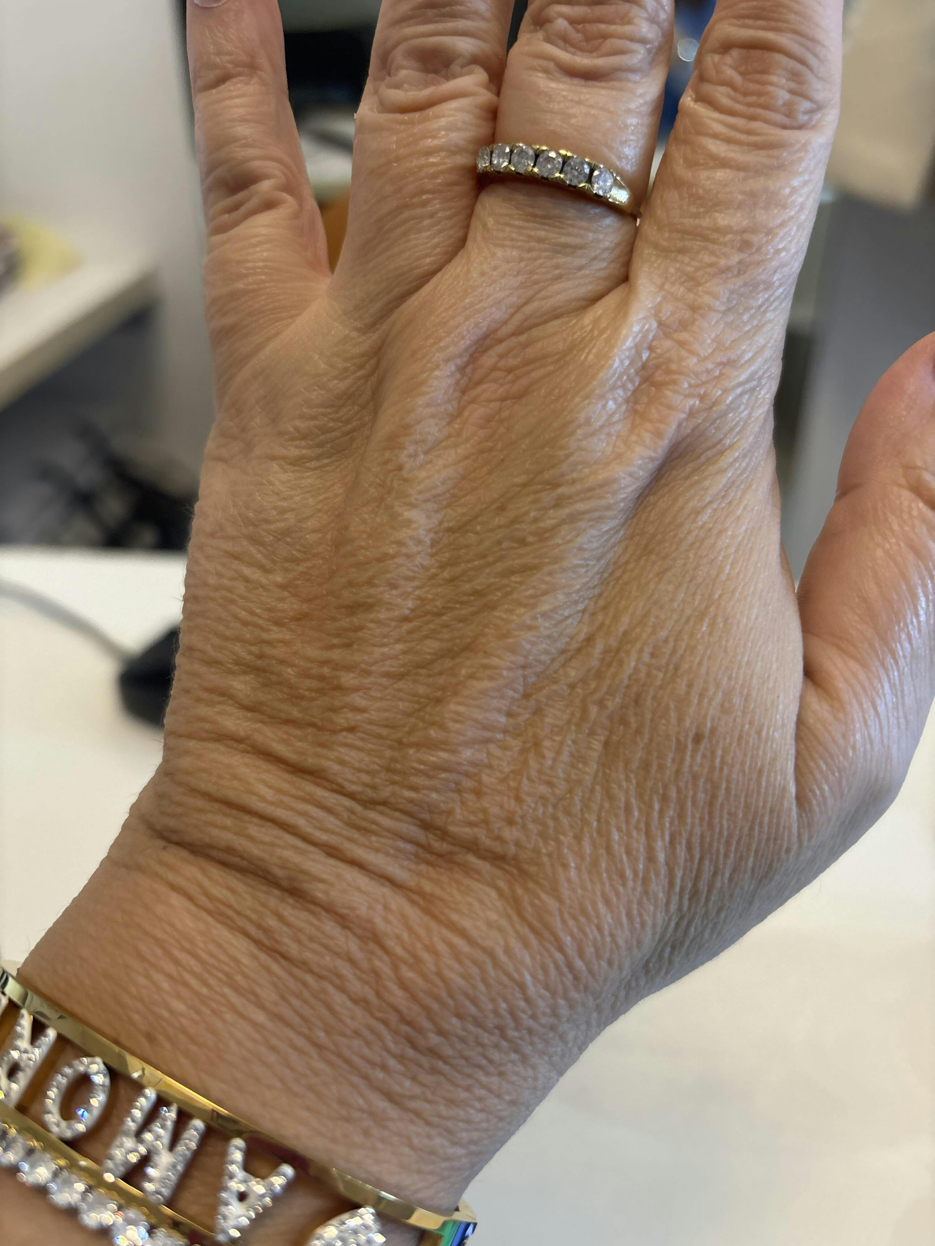 La bellezza autentica si riconosce nei dettagli. La Fede Longuette Regolabile, nel suo luminoso colore argento, unisce la raffinatezza di un design allungato alla versatilità di un gioiello regolabile, capace di adattarsi con delicatezza a ogni mano. La fila di punti luce incastonati cattura e riflette la luce, creando un bagliore continuo che accompagna ogni movimento.